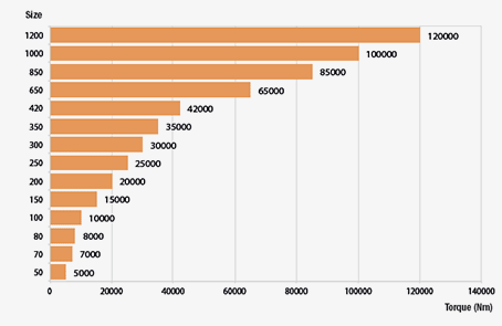 A ampla gama de reduções disponíveis permite a seleção do tamanho e tipo de motor que melhor se adapte às necessidades dos utilizadores: hidráulicos ou elétricos.